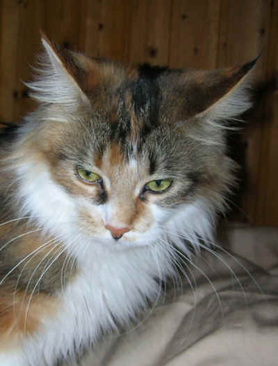 Ch. Naja of Secret Dreams geb. 02.02.2006 Farbe: black-torbie-cl.-white kastriert/neutered |
