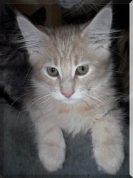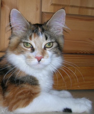 (Püppi) ist der Farbklecks unter meinen Coonies, so eine liebe, Hübsche habe ich mir immer gewünscht. Sie ist eine freundliche und selbstbewusste Katze und hat sich schnell in der Gruppe zurecht gefunden.